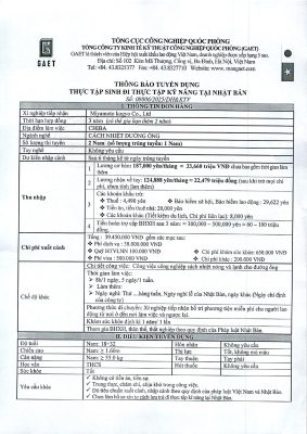 Tuyển 20 sinh viên Thực tập sinh Nhật Bản