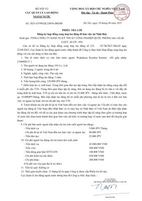 (Tiếng Việt) Phiếu TL Cục QLLĐNN về cung ứng TTS Nhật Bản tháng 8-2025