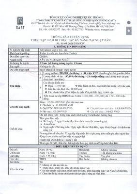 Thông báo tuyển dụng Thực tập sinh Nhật Bản