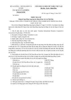 Phiếu trả lời của cục quản lý lao động ngoài nước về việc cung ứng...